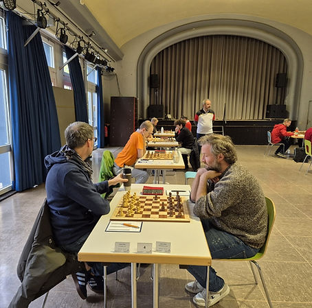 Die Spannung im Raum 104 der Bürgerwache war deutlich spürbar. Das übliche Herumspazieren und Kiebitzen, während die Uhr des Gegners läuft, fiel fast vollkommen aus. Stattdessen saßen alle konzentriert und still am Brett.