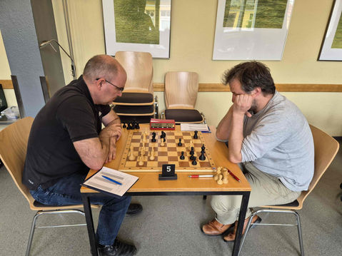 Ich hatte aus der Eröffnung gegen Manuel Ebert ein etwas besseres damenloses Mittelspiel, behandelte dieses aber zu schematisch. Durch weitere Fehler war die Stellung zeitweise verloren, doch am Ende bekam ich Remis, weil der Mannschaftskampf bereits für uns entschieden war.